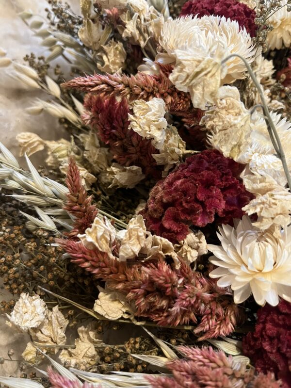 Dried Flower Wreath – Crimson Snow