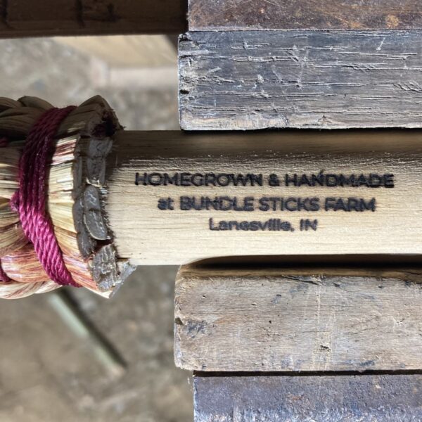 Custom order a broom made of 100% farm-grown broomcorn that was grown on our farm in Lanesville, Indiana. A “care of a broom” card will be shipped with the broom (see pics). Shipping and handling ($40) added at checkout. There is also an option to pick up from the farm.